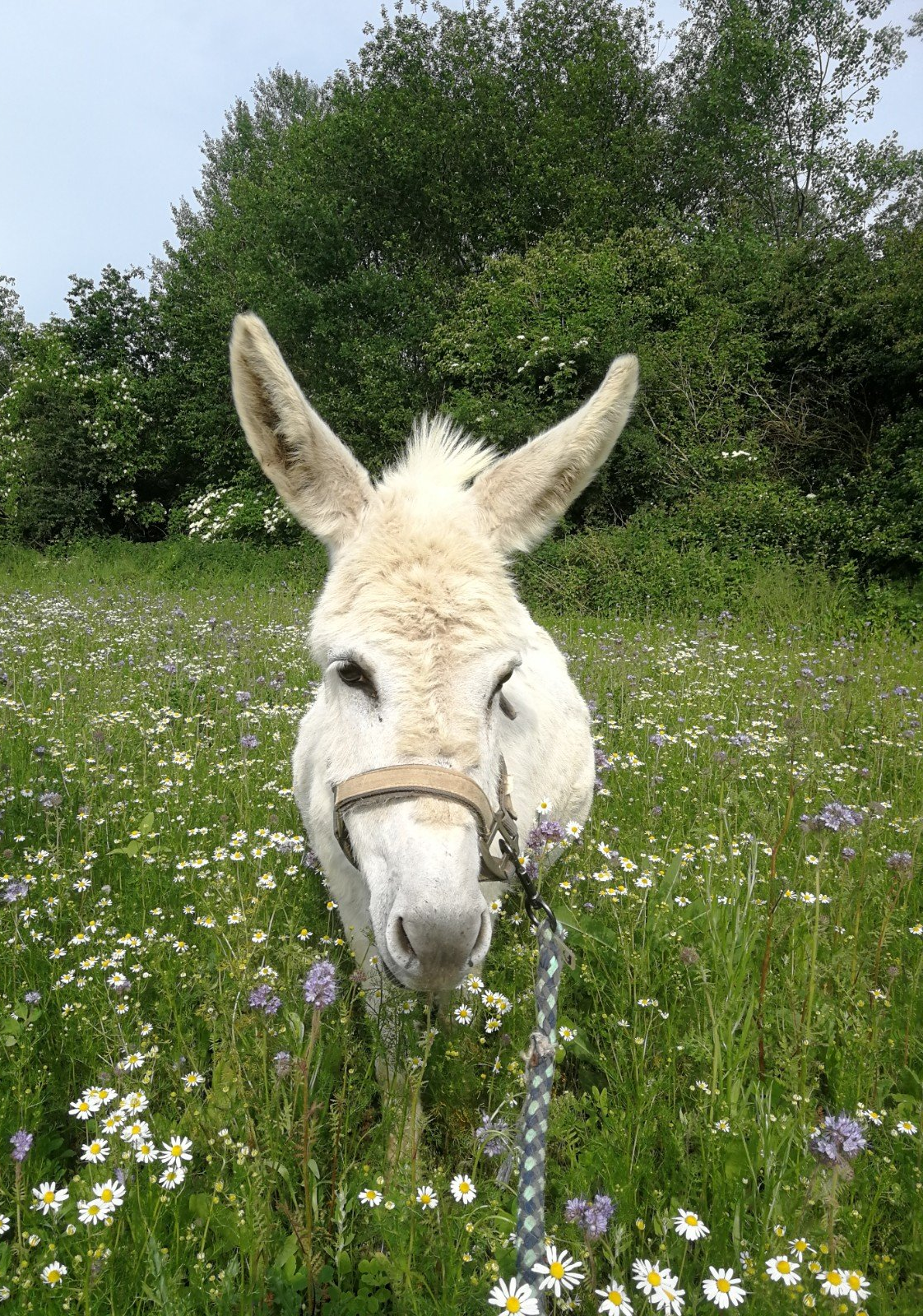 Esel haben einen ausgeprägten Charakter, sind hoch intelligent und probieren sich gerne aus. Der Umgang mit Rosalie und Magret ist wohltuend und gibt neue Energie für den Alltag.